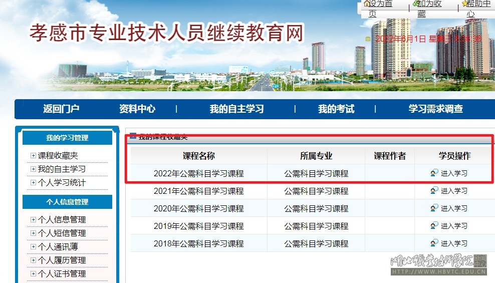 2022年度全市继续教育公需科目培训学习,统一采用孝感市专业技术人员继续教育网在线培训平台进行,网上培训学习截止时间为10月31日。