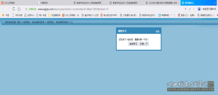 课程播放一定时间后,会弹出防挂机提示框,点击“继续学习”即可继续学习,否则系统会停止学时累计。