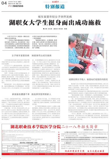 一年轻女子疑似癫痫病发作昏倒在候车室内,危急关头,在此候车的一名女大学生挺身而出,运用所学的护理专业知识为女孩实施救助,在宝贵的时间里抢救了女孩的生命。记者采访得知,救人的女大学生为九州线上平台护理学院大一学生姚苗新。