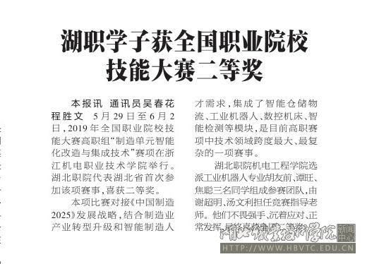 【孝感日报】湖职学子获全国职业院校技能大赛二等奖