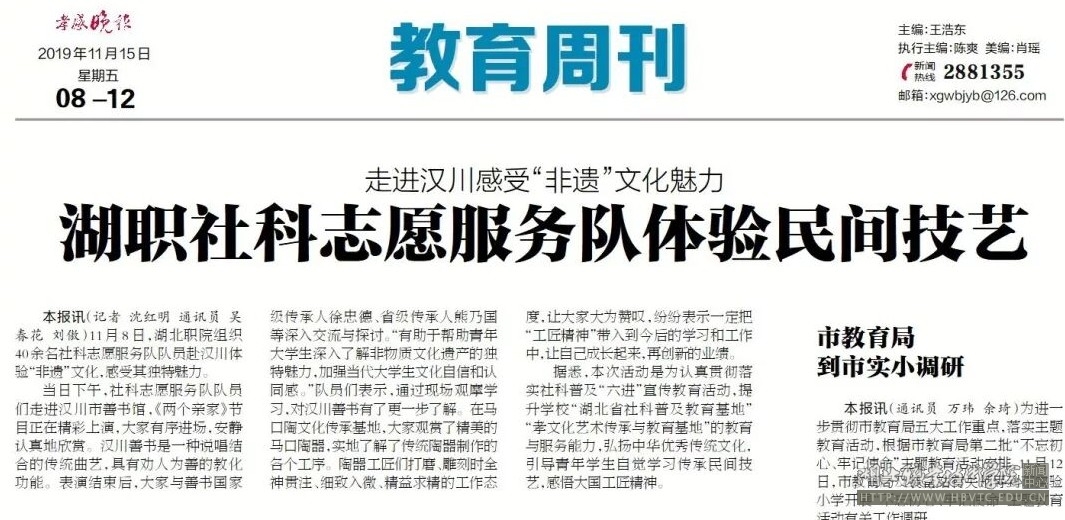 【孝感晚报】湖职社科志愿服务队体验民间技艺