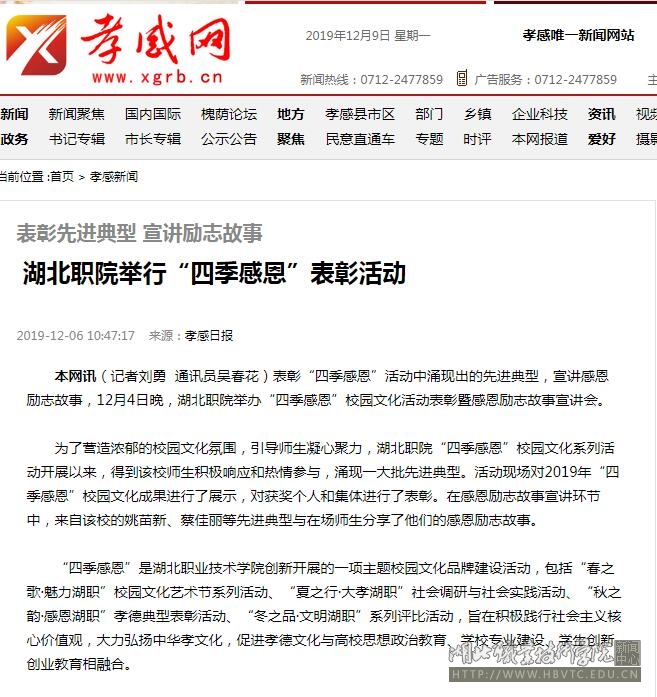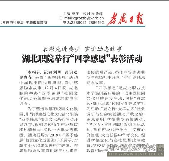 【孝感日报】湖北职院举行“四季感恩”表彰活动