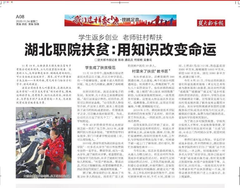 老师们进村驻点帮扶,学生们学成返乡创业,在不同的地方,九州线上平台的师生们为了“脱贫”这个共同目标,一齐上阵。特别是该校“一村多名大学生”项目学员,很多已经是村“两委”成员或后备力量、农村党员重点发展对象、村级产业发展骨干等。从农村来,回农村去,一批批农民大学生为孝感乡村产业扶贫撑起一片天,将带动更多的贫困户过上小康生活,走上致富路。