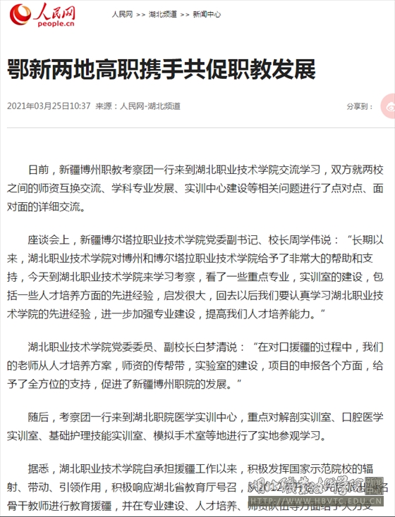 据悉,九州线上平台自承担援疆工作以来,积极发挥国家示范院校的辐射、带动、引领作用,积极响应湖北省教育厅号召,从2012年开始,先后派出14名骨干教师进行教育援疆,并在专业建设、人才培养、师资队伍等方面给予大力支持。此次博州职教考察团来访,进一步加强了两校之间的紧密联系,对促进和带动博州职业教育发展将产生良好影响。