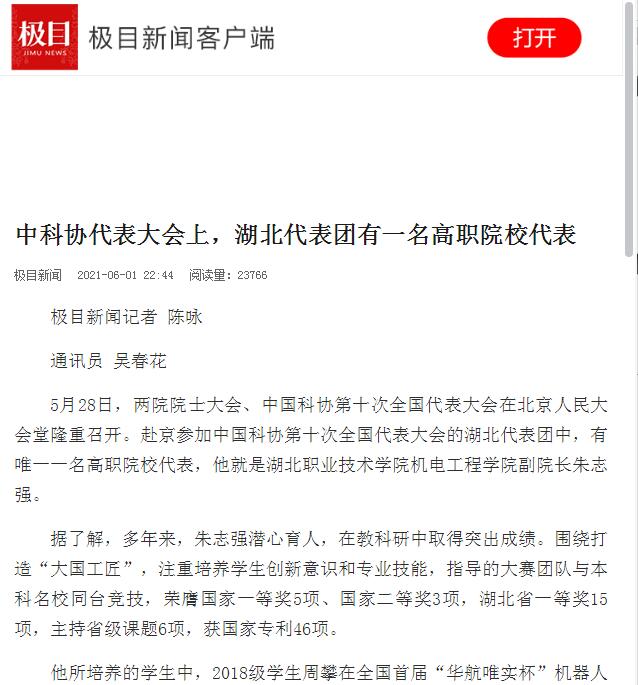 【楚天都市报】中科协代表大会上,湖北代表团有一名高职院校代表