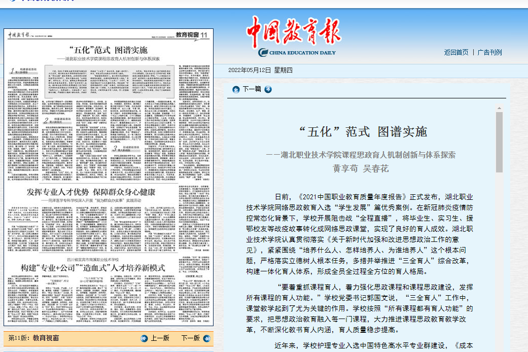 近年来,学校护理专业入选中国特色高水平专业群建设,《成本会计》《外科护理》荣获首届全国教材建设奖二等奖,“人工智能技术与应用”教学团队入选首批国家职业教育教师教学创新团队,学校课程思政教学研究中心获评湖北省课程思政教学研究示范中心,学校先后涌现出全国卫生健康系统新冠肺炎疫情防控工作先进个人陈凡、“中国大学生自强之星”姚苗新等一大批优秀学生典型,形成了交相辉映的“群星效应”。