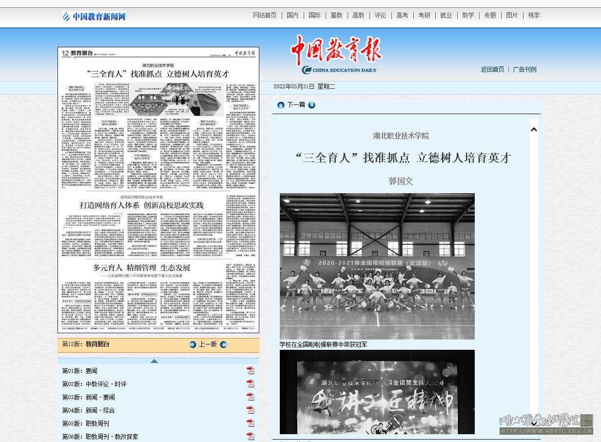 紧紧抓住办好思政课这个关键。着力建设“政治强、情怀深、思维新、视野广、自律严、人格正”的专业化思政课教师队伍,建立学校党委书记、校长联系思政课教师,党委班子成员听、评、讲思政课制度,激发思政课教师积极性、主动性、创造性。推动思想政治理论课内涵式发展,统筹推进思政课专题式教学改革、实验教学改革、实践教学改革、教学评价改革,建设虚拟仿真思政课教学体验中心;打造思政金课,建设新时代“孝道中国”思政课,讲好抗疫等“大思政课”;开展诵读经典活动,让经典走进思政,不断增强思政课的思想性、理论性和亲和力、针对性。学校抗疫“大思政课”网络思政育人案例入选《2021年中国职业教育质量年度报告》。