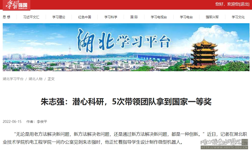 凭借出色的业绩,朱志强作为高职院校代表,先后参加中国科学院第二十次院士大会、中国工程院第十五次院士大会和中国科学技术协会第十次全国代表大会,荣获“湖北青年五四奖章”“湖北省向上向善好青年”等称号。