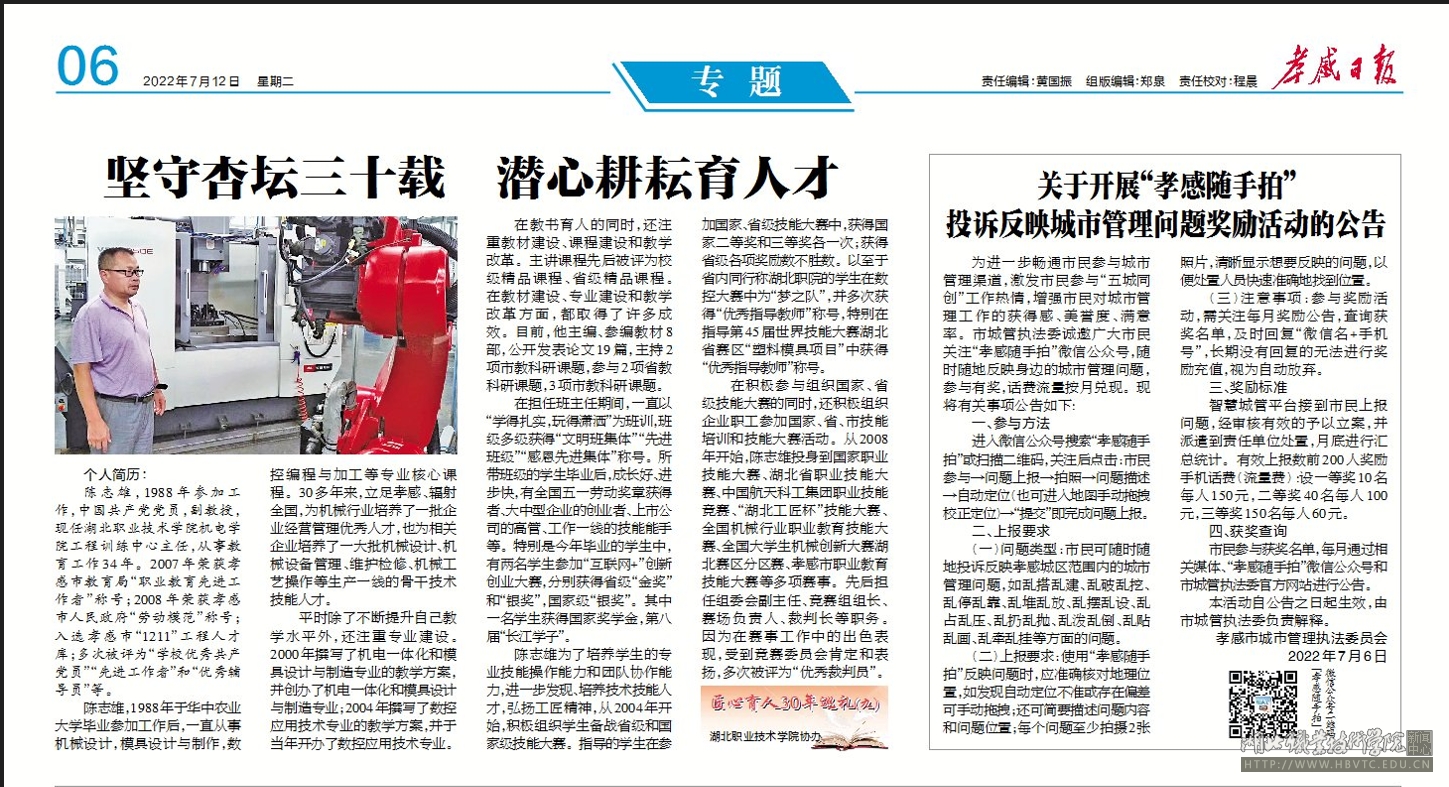 【孝感日报】坚守杏坛三十载 潜心耕耘育人才