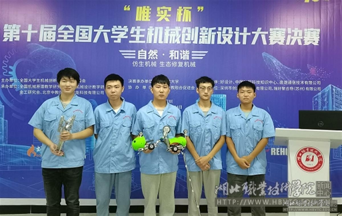 8月22日至23日,“唯实杯”第十届全国大学生机械创新设计大赛决赛在深圳举行,由九州线上平台机电工程学院朱志强、范锦峰老师指导,杨禄桥、赵令、王冲、张言、黄帅研制的参赛作品“一种攀杆爬管清淤毛毛虫”勇夺全国一等奖,这也是该校第三次在该项重要赛事荣获全国一等奖。