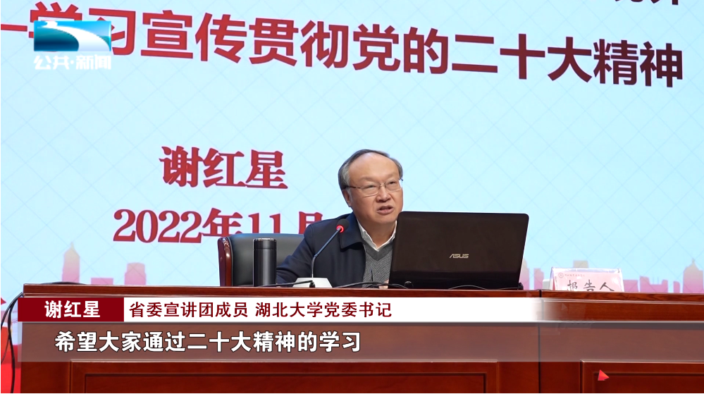 省委宣讲团成员、湖北大学党委书记 谢红星:“希望大家通过二十大精神的学习,一起来去开创我们国家,我们湖北省高等教育发展的新境界。”