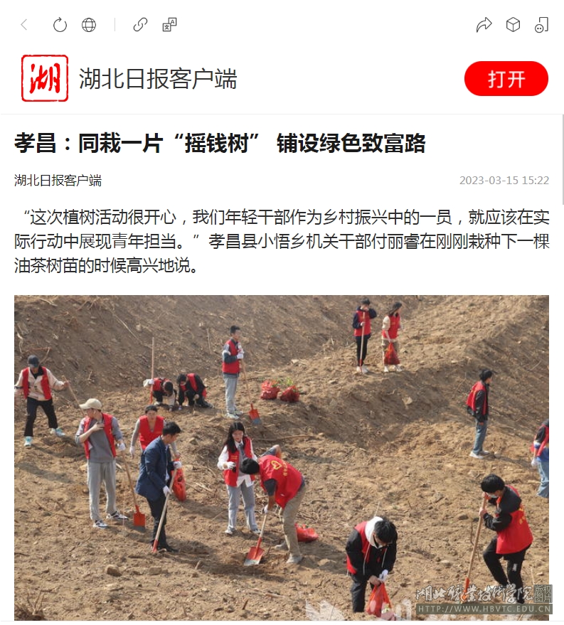 (湖北日报客户端 通讯员王虹 汪向东 刘颖)“这次植树活动很开心,我们年轻干部作为乡村振兴中的一员,就应该在实际行动中展现青年担当。”孝昌县小悟乡机关干部付丽睿在刚刚栽种下一棵油茶树苗的时候高兴地说。