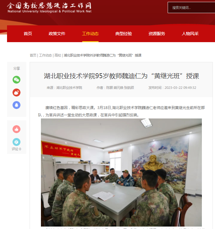 (陈灏 熊元焕)赓续红色基因,精彩思政大课。3月18日,魏迪仁老师应邀来到黄继光生前所在部队,为官兵讲述一堂生动的大思政课,在官兵中引起强烈反响。