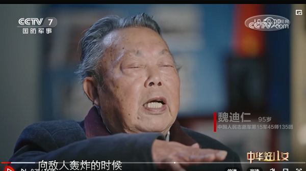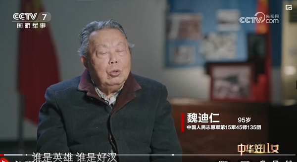 (本网讯 陈灏)近日,央视7频道(国防军事频道)播出纪录片《中华好儿女》,在该纪录片第8集《跨越》,我校教师、上甘岭战役亲历者、第三届全国道德模范提名奖获得者、第三届湖北省道德模范魏迪仁老师讲抗美援朝战争英雄故事和伟大的抗美援朝精神。