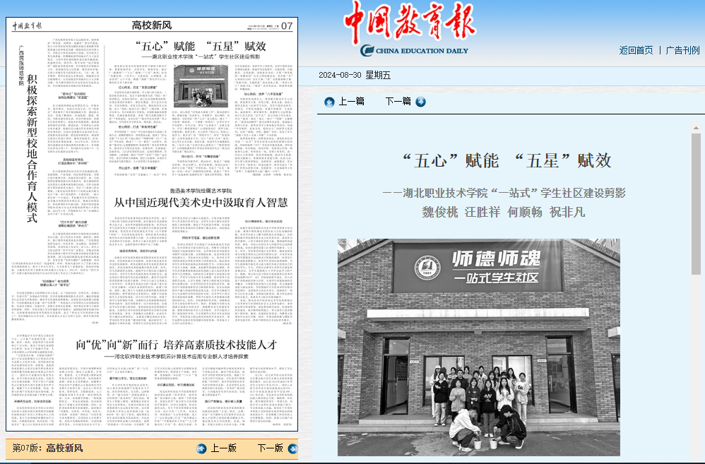 九州线上平台始终坚持立德树人根本任务,紧紧围绕学生、关照学生、服务学生,践行“一线规则”,“五心”赋能,“五星”赋效,打造“党建引领、三全育人、文化浸润、心理服务、自治管理”五个平台,构建“湖职”特色学生社区,激发社区育人新动能。