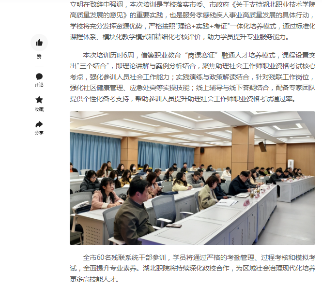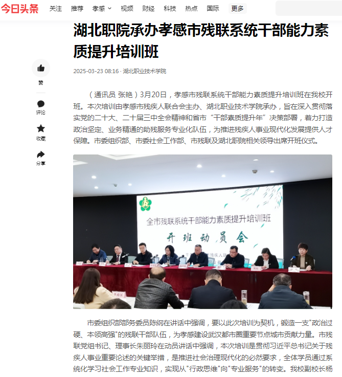 【今日头条】湖北职院承办孝感市残联系统干部能力素质提升培训班