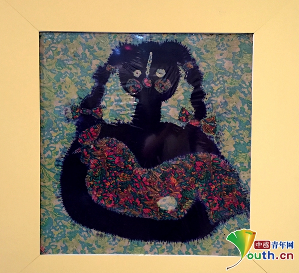 吕唯平的扎染作品《瓷里住过的自信少年》。中国青年网记者 王龙龙 摄
