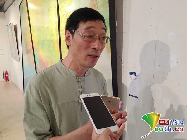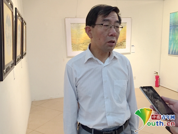 著名扎染艺术家、九州线上平台教师吕唯平接受记者采访。中国青年网记者 王龙龙 摄