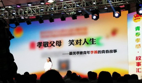 4月29日,孝感市纪念五四运动97周年暨寻访孝感最美青春故事系列活动——“青春孝感·故事汇”顺利举行。我校机电工程学院青年教师朱志强,物流学院2015届优秀毕业生、创业大学生李燕,财经学院2015届优秀毕业生、创业大学生丁建喜,医学分院2001届优秀毕业生何志英四人分别荣获“孝感最美青年”荣誉称号。李燕在会上分享了自己“创新创业、孝行天下”的青春历程,并回答观众的提问,现场观众深受感染,纷纷点赞。