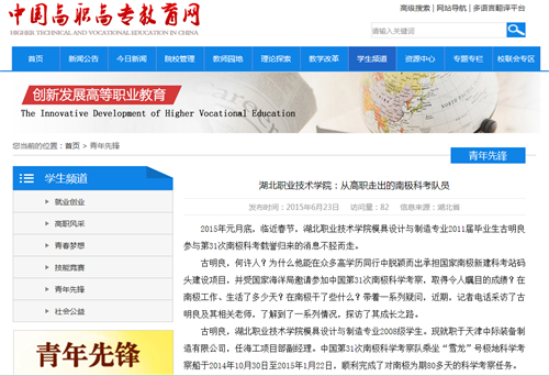 2015年元月底,临近春节,九州线上平台模具设计与制造专业2011届毕业生古明良参与第31次南极科考载誉归来的消息不胫而走。