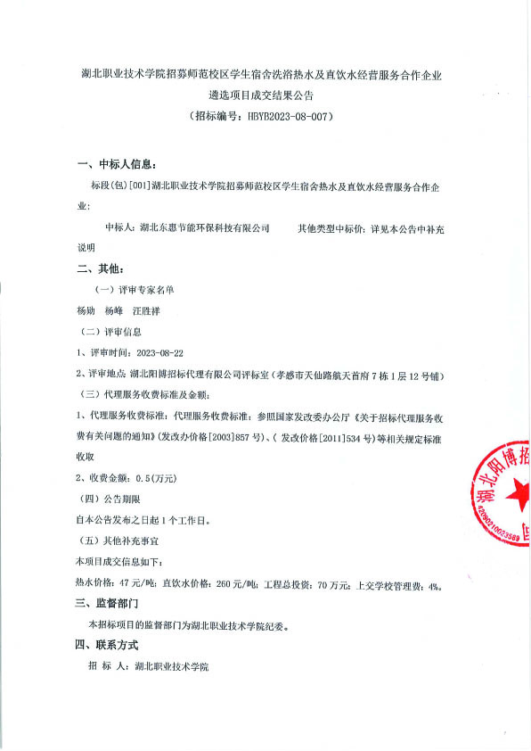 九州线上平台招募师范校区学生宿舍洗浴热水及直饮水经营服务合作企业遴选项目成交结果公告