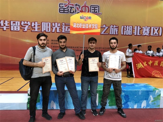 5月21日,由湖北省教育厅组织的“第三届留动中国在华留学生阳光运动文化之旅选拔赛(湖北赛区)”在武汉体育学院举行。作为唯一的职业院校留学生代表队,我校来自阿塞拜疆国立旅游与管理大学的留学生经过短时间的准备,带着饱满的热情完成了“三对三篮球赛、民族艺术展示、越野障碍赛”等规定赛项,最后获得了大赛组委会颁发的“体育道德风尚奖”。