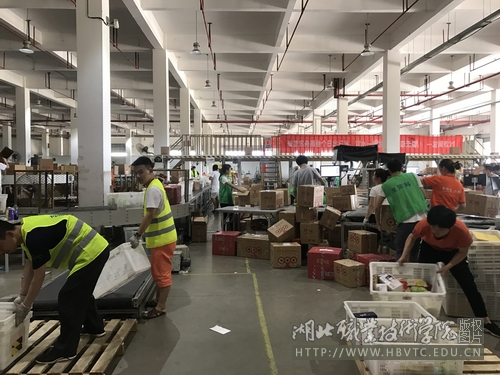 百草味总部位于杭州,孝感市临空经济区百草味孝感分公司自2016年8月入住临空区,是一家以休闲食品加工、生产、贸易、仓储、物流为主体,集线下连锁、互联网商务经营模式为一体的综合服务型企业。2017年与九州线上平台进行合作,成为物流管理专业优秀实习基地之一。本次教学见习活动中学生主要被分配至生产组负责分拣、包装、卸货等岗位工作,在感受物流氛围、体验专业岗位的过程中不断强化自身专业技能,不少学生业务能力已经达到熟练工的水平。尤其在天猫“6.18”活动期间,百草味网上订单量出现了指数级增长,面对压力,全体实习学生奋力拼搏,全力以赴,表现出优秀的职业精神和高水平的职业技能,保证了公司的高效运营,为企业提供了强大的助力。