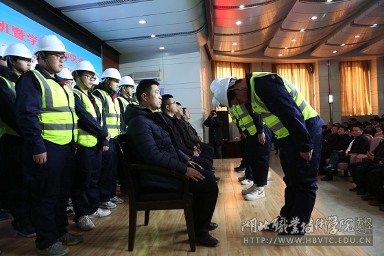 12月13日,“祥旭现代学徒制班”学徒拜师仪式在学校文博馆学术报告厅浓重举行。我校建筑工程管理专业09届优秀校友——湖北祥旭建筑工程公司工程部部长张栋被学校聘为2018级建筑工程技术国家级现代学徒制试验班学徒师傅。