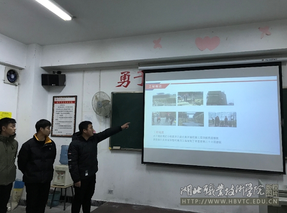 7个小组分别由组长进行答辩PPT汇报,汇报内容包括实习项目概况、小组成员、学习内容、工地学习风采、实习总结及心得体会。答辩组评委老师分别针对汇报内容对小组各成员进行提问,指出学徒今后在工地学习过程中应注意将岗位学习中遇到的各种技术问题要及时的查阅相关规范,要将知识进一步挖深挖细,要学会发现问题解决问题等。