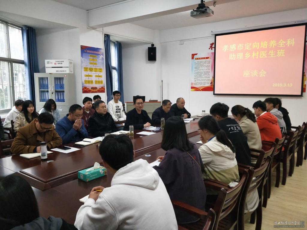 为了全面了解全科助理乡村医生班学生的学习、生活情况,解决学生们关心关切的问题。3月13日,医学院在党员活动中心召开了孝感市定向培养全科助理乡村医生班学生座谈会。医学院院长许三林、党总支书记周兴国、副书记程曙文、副院长刘小平,学工办、教学办、辅导员及42名学生代表等参加了会议。座谈会由程曙文主持。