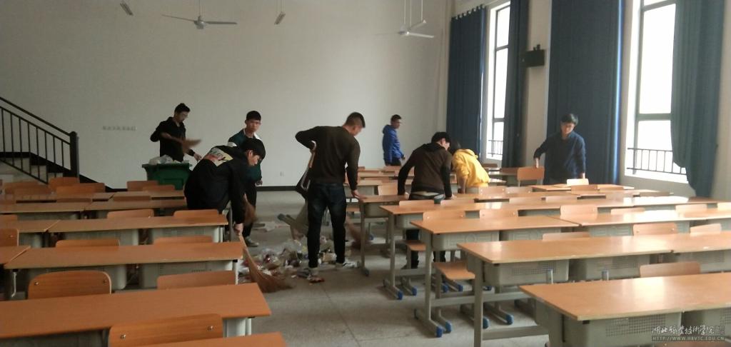 3月13日,信息技术学院学雷锋志愿小分队以“弘扬雷锋精神,做文明大学生,构建和谐校园”为宗旨,在老师带领下在南校校区知行楼开展卫生清扫活动。