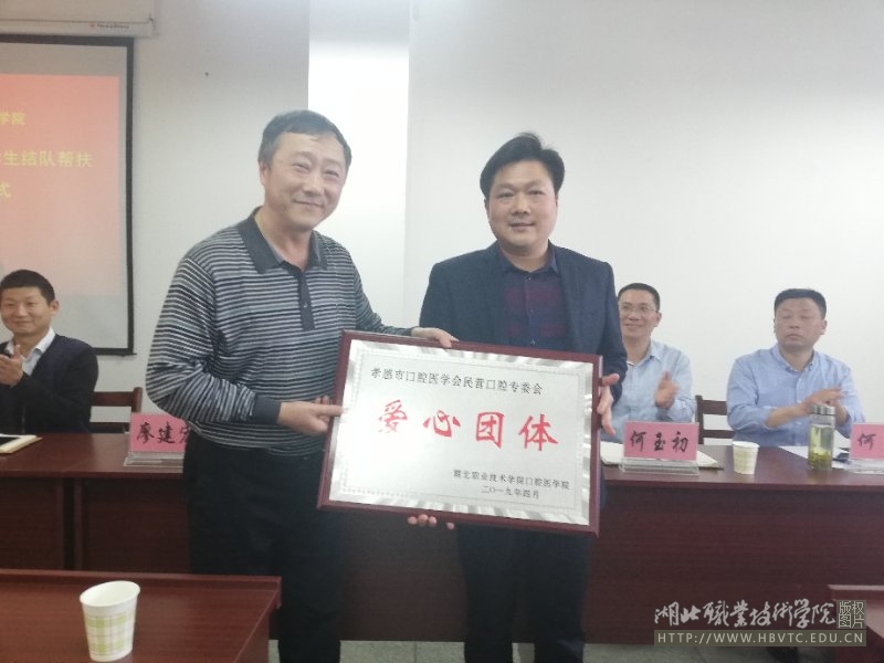 4月17日下午,口腔医学院党员教师、爱心企业结对帮扶“爱心助学”助学金发放仪式在东校区仁和楼425会议室举行。孝感市口腔医学会民营口腔专委会会长涂艮斌以及孝感城区部分口腔医疗机构代表,学校党委宣传部、学工部相关负责人,口腔医学院班子成员、教师代表、学生代表等参加了本次活动。助学金发放仪式由口腔医学院党总支副书记高想清主持。