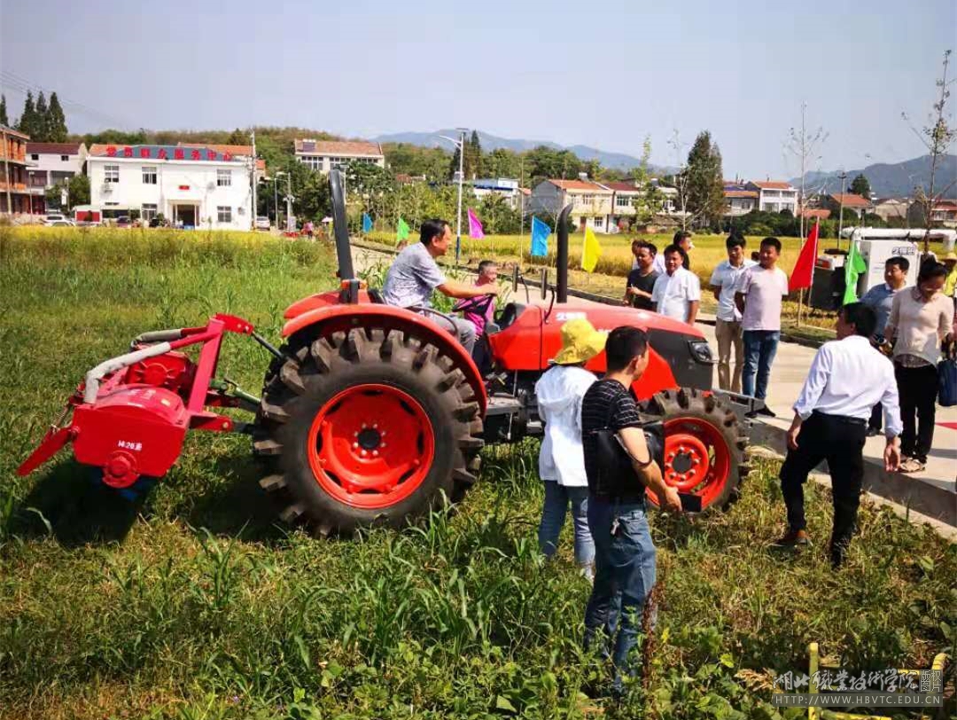 仪式结束后,参与揭牌仪式的领导和专家,观摩了2018级农业装备应用技术专业“一村多”学员运用联合收割机收割水稻、耕田机耕地操作。机电工程学院党总支书记刘新平接受了孝昌县电视台关于实训基地建设背景、作用等方面的采访。