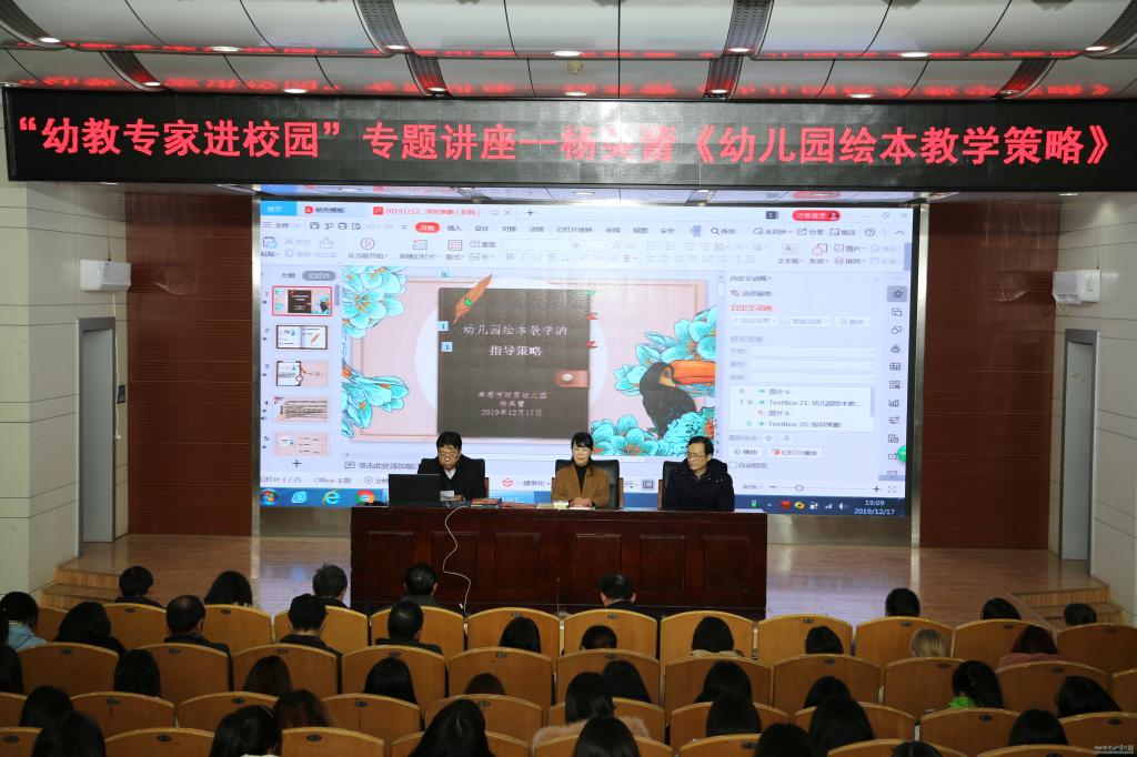 12月17日,教育与艺术学院在文博馆学术报告厅组织了“幼教专家进校园”专题讲座,邀请孝感市财贸幼儿园园长、特级教师杨英蕾同志为学前教育专业师生开展了一场别开生面的专题报告。教育与艺术学院班子成员、学前教育专业全体教师、学生代表等聆听了讲座,讲座由教育与艺术学院院长肖成林主持。