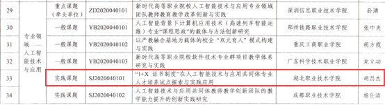 日前,教育部公布了首批国家级职业教育教师教学创新团队课题研究项目立项结果和全国职业教育教师企业实践基地“产教融合”专项课题研究项目名单(见教师函〔2020〕3号),我校胡昌杰教授主持的《1+X证书制度在人工智能技术与应用共同体专业人才培养试点探索与实践应用》项目获得首批国家级职业教育教师教学创新团队实践课题研究项目立项。同时,我校作为国家级职业教育教师教学创新团队培育单位,与深圳信息职业技术学院联合申报的《新时代高等职业院校人工智能技术与应用专业领域团队教师教育教学改革创新与实践》获国家级职教团队课题研究项目专业领域重点课题立项。