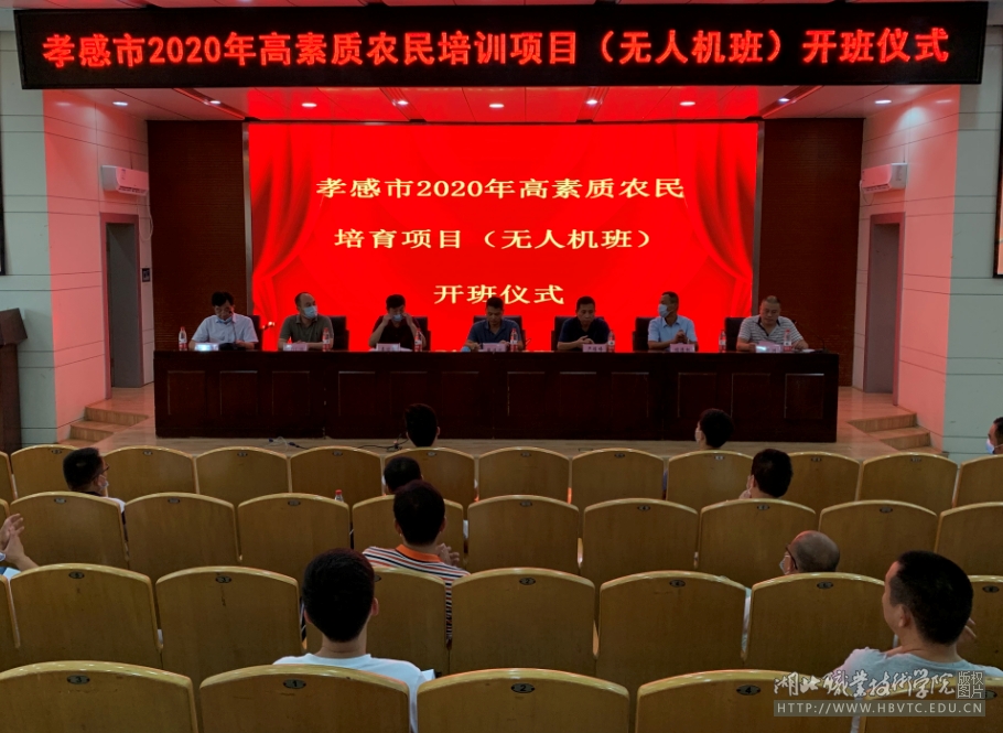 为助力“乡村振兴”战略,培养有文化、懂技术、善经营、会管理农村实用人才,示范带动地方特色产业发展,带领群众脱贫致富。8月8日上午,由孝感市农业农村局主导,我校承办的孝感市高素质农民培育项目(无人机班)在文博馆学术报告厅顺利开班。学校副校长李佳圣,市农业农村局党组成员、副局长局张建波,湖北蜂巢植保服务有限公司董事长程德红,学校培训中心主任林文学、机电工程学院院长袁晓洲等出席了开班仪式。机电工程学院2018级、2019级“一村多名大学生计划”农业装备应用技术专业60名参训学员参加了开班仪式。开班仪式由林文学主持。