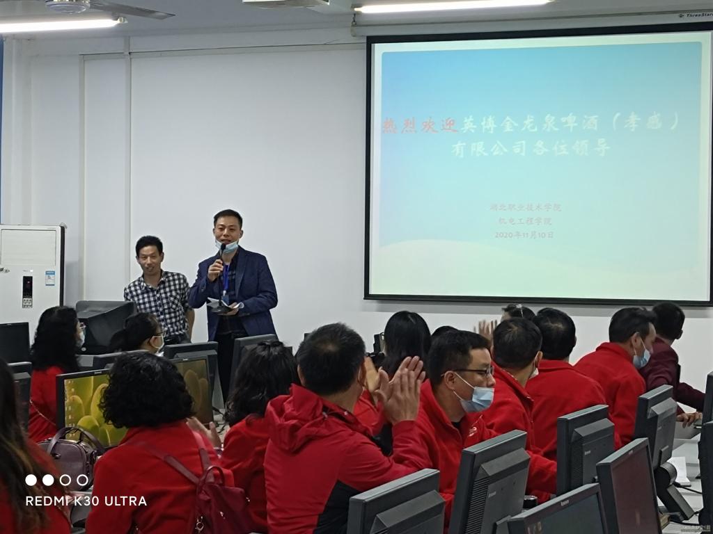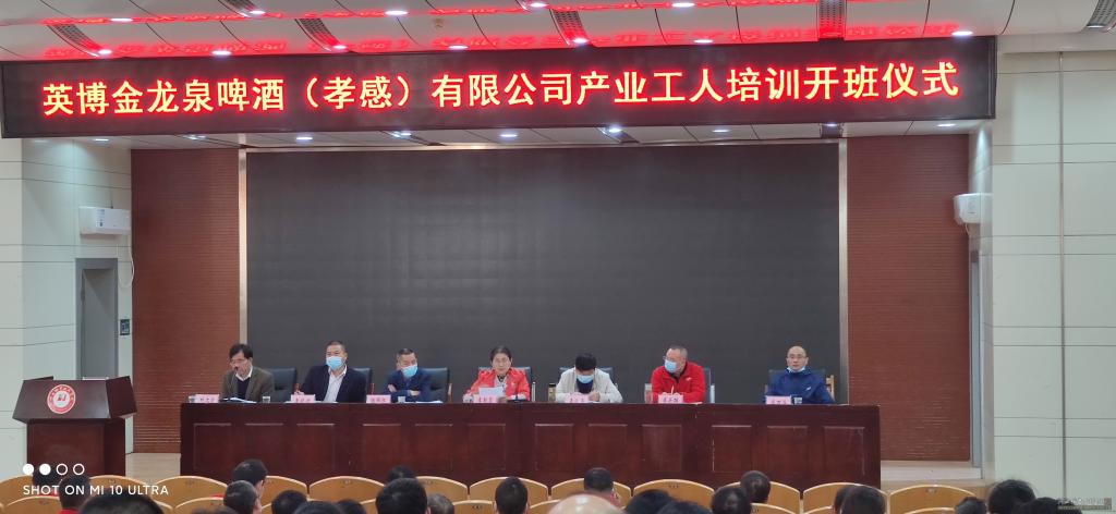 (本网通讯员 朱志强)11月10日上午,由孝感市总工会主办,我校培训学院、机电工程学院承办的英博金龙泉啤酒(孝感)有限公司产业工人培训在西校区文博馆学术报告厅顺利开班。市总工会党组成员、副主席李朝霞,学校党委委员、副校长李佳圣,英博金龙泉啤酒(孝感)有限公司总经理陶锦红、副总经理、驻厂代表李关雄等出席,学校社会服务中心、机电工程学院负责人及相关人员参加了培训班开班仪式。参加本次培训的对象全部来自于英博金龙泉啤酒(孝感)有限公司,各类技术人员、管理人员等80余人。