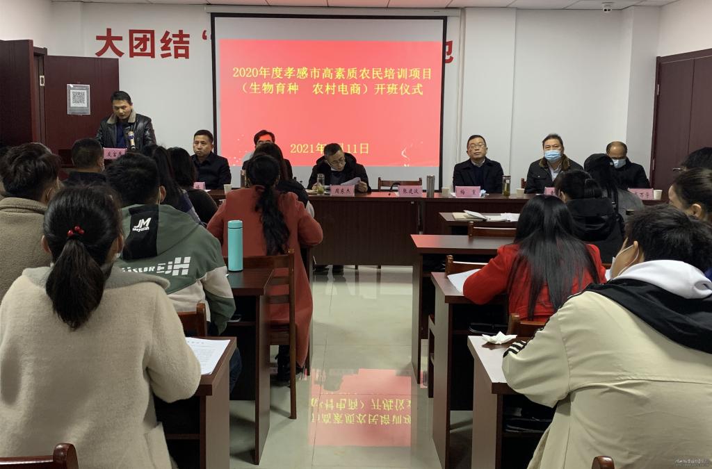 (本网通讯员:曹艺)为了更好地为孝感市培养有文化、懂技术、善经营、会管理农村实用人才,示范带动地方特色产业发展,带领农民脱贫致富。3月11日上午,由孝感市农业农村局主办,我校机电工程学院承办的孝感市高素质农民培育数字农业农村班顺利开班。市农业农村局党组成员、副局长张建波,学校副校长梅重等出席开班仪式。市农村农业局、学校机电工程学院、职业培训中心相关同志、“一村多名大学生计划”参训学员等参加了开班仪式。开班仪式由学校职业培训中心主任林文学主持。