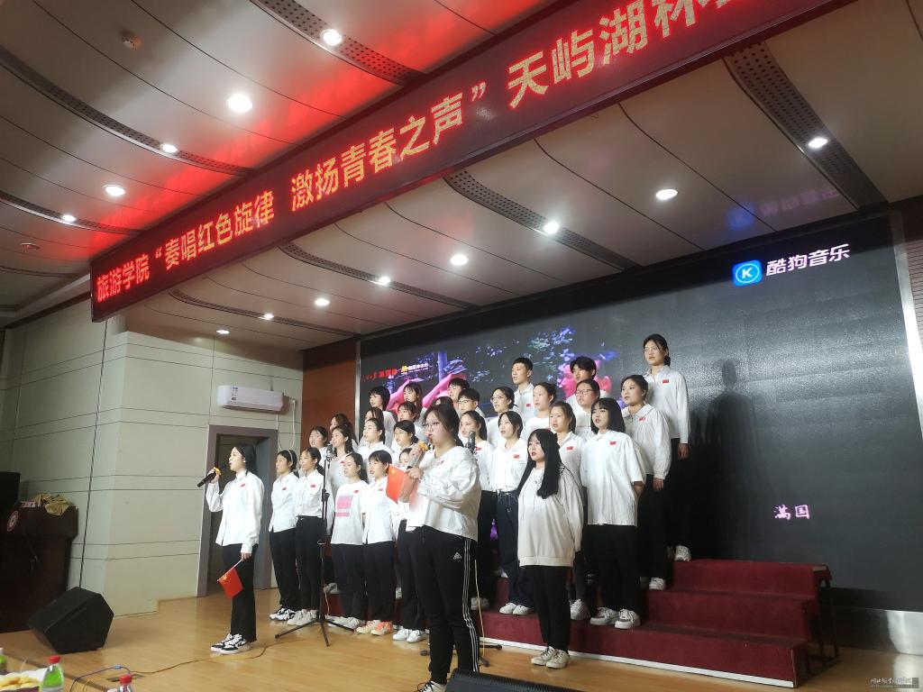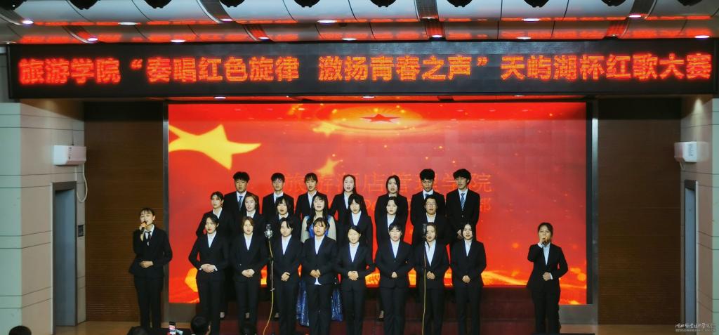 激昂的歌声吟唱难忘的岁月,熟悉的旋律演绎时代的乐章。旅游与酒店管理学院师生用《歌唱祖国》《我的中国心》《我爱你中国》《闪闪的红星》等歌曲表达了对党和祖国的炽热情感,坚定了跟党走的决心和信心。经过激烈的角逐,2019级“一村多”乡村旅游专业班的合唱《今天是你的生日》摘得桂冠。