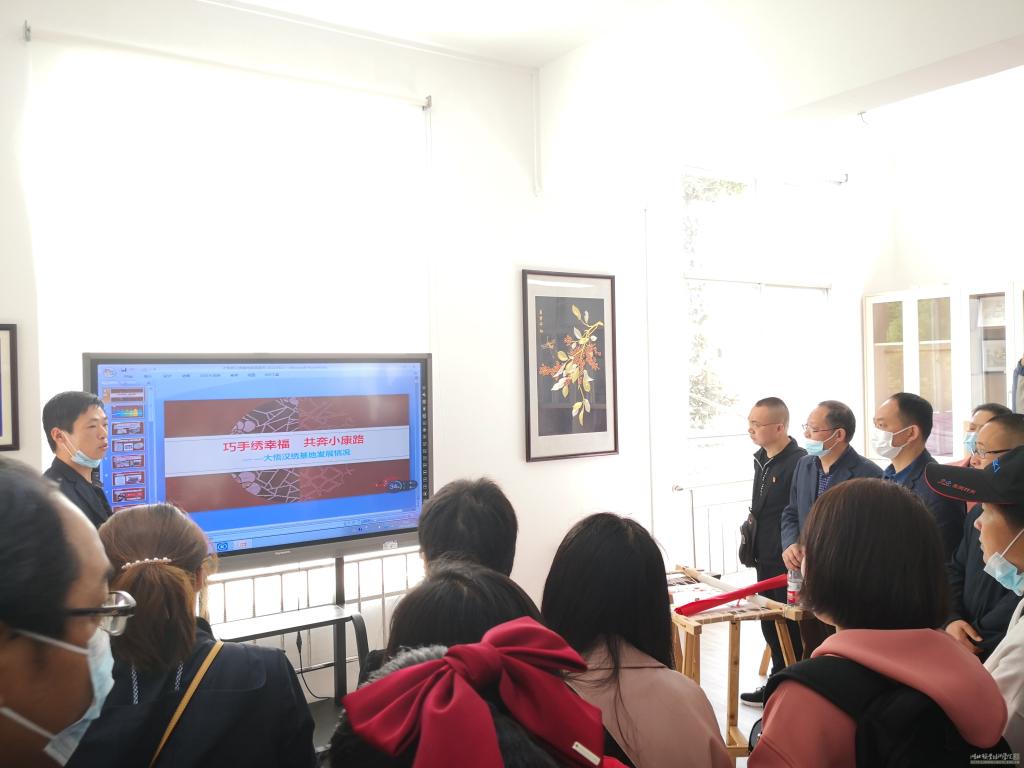 随后,师生到大悟汉绣产业研究院及金岭村汉绣产业基地进行了实地教学活动。了解大悟汉绣的发展历史,观摩绣娘的现场刺绣,参观大悟汉绣的优秀作品。围绕汉绣的市场推广及汉绣人才培养等问题,师生和现场工作人员展开热烈探讨,对汉绣产业发展中遇到的实际困难把脉问诊,献言献策,本次学习引发了“一村多”学员对大悟汉绣的浓厚兴趣,为后续学校汉绣课程的开设打下了良好的基础。