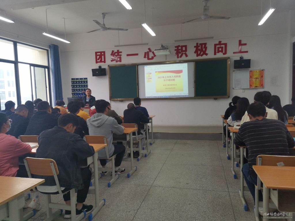 (本网通讯员 邓小楚)为进一步加强入党积极分子对党史、党的理论、党的纪律制度等知识的认知和理解,进一步端正入党动机,提高政治觉悟,坚定为共产主义事业奋斗终身的信念,按照《中国共产党发展党员工作细则》等有关规定和学校党委年度工作安排,结合工作实际,机电工程学院2021年上半年入党积极分子培训班4月19日开班。机电工程学院党总支负责同志、辅导员代表、全体入党积极分子参加了开班仪式,开班仪式由党总支副书记邓小楚主持。开班仪式后,党总支书记刘新平同志为培训班学员讲授了题为《中国共产党的性质、最高理想和根本宗旨》的专题党课。