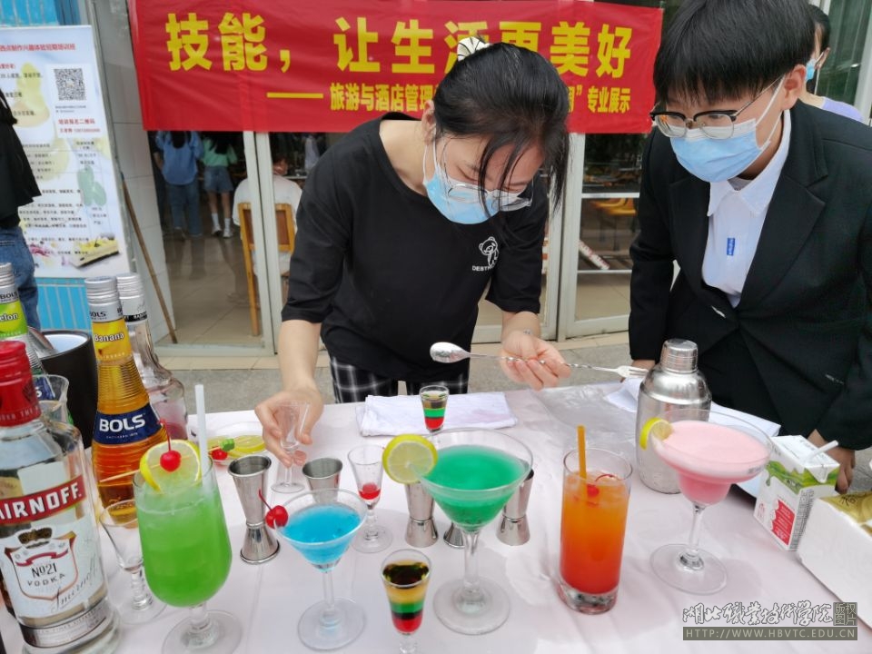 以中西面点工艺专业、酒店管理专业核心技能蛋糕点心制作和酒水调制为主进行专业展示,师生现场蛋糕制作和酒水调制,五彩缤纷的酒水、生动有趣的点心以及学生们洒脱自如、技艺高超的操作技能让在场观众惊叹和佩服,并热情参与现场西点酒水操作体验,活动同时启动了西点烘焙爱好者西点制作短期培训班项目,展示了专业魅力。