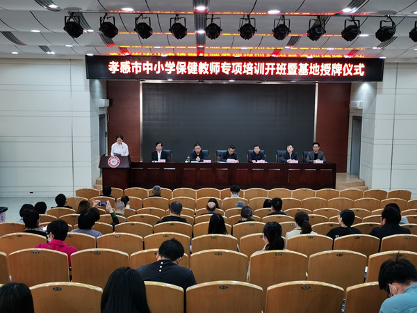 (本网通讯员:张进兵)10月25日上午,由孝感市卫生健康委员会、孝感市教育局联合主办的孝感市中小学保健教师专项培训班在学校文博馆学术报告厅顺利开班。孝感市卫健委党组成员、副主任、市疾控中心主任蔡全民,市教育局党组成员、副局长王建军,学校党委委员、副校长梅重,市教育局中小学体育卫生工作站站长彭卫红,学校医学院院长许三林、职业培训中心主任林文学出席,来自孝感城区中小学的60名参训教师参加了开班仪式。开班仪式由林文学主持。