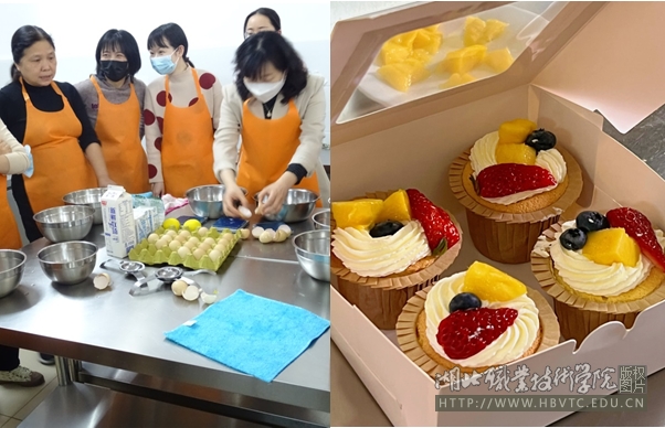 期间,西点专业教师彭秋婵、戴卓带领学生志愿者,围绕烘焙基本工艺流程,耐心地讲解、指导。辅导员们互帮互助,学习热情高涨,很快掌握了基本技巧,并亲手制出自己心仪的作品,活动深受大家的欢迎。