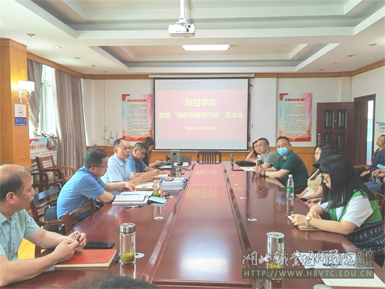 (本网通讯员:马江浩)5月25日下午,财经学院在文华楼2楼会议室召开全体教师“强校有我在行动”交流会。学校副校长梅重出席,财经学院全体教师参加会议,会议由财经学院院长徐斌华主持。