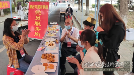 耐心指导——求真务实,组织育人。学院特设党员服务站咨询点,师生党员们均佩戴党徽,亮出身份,到岗迎新,耐心地为新生答疑解难。中西面点党员教师带领学生制作甜品点心,让新生甜在嘴里,暖在心里;物流专业、酒店管理专业教师指导党员学生使用物流叉车、酒店行李车等专业设备,提高新生行李托运效率。另外,了解到开学日也是22级电商专业新生华凯南的生日,辅导员赵宇佳特意准备了生日蛋糕为其庆祝,“谢谢老师陪我度过一个如此特别的生日,我一定好好学习,不辜负老师的期望,在这个温暖的大家庭里努力奋斗。”华同学感动地说。