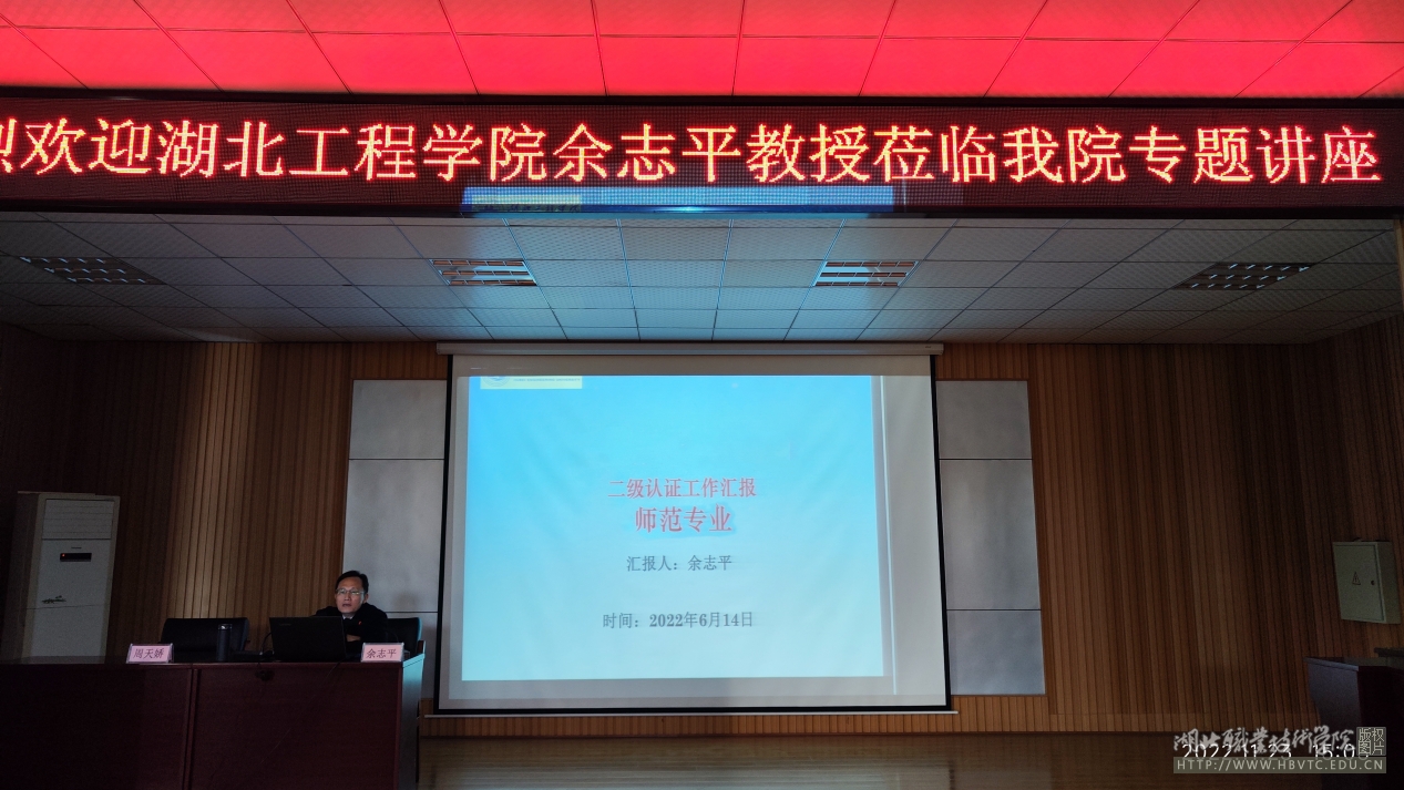 (本网讯 彭琳君)为持续深化教育与艺术学院师生对师范类专业认证理念的理解,扎实推进师范类专业认证工作,确保认证准备工作的有效开展,11月23日下午,我院特邀湖北工程学院师范类专业认证专家、文学院院长余志平教授,为我院师范类专业师生作题为“师范专业认证的过程”的专题讲座。