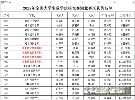(本网讯 通讯员:刘学才)2022年全国大学生数学建模竞赛结果日前揭晓,我校15名学生组成5个代表队参加了湖北赛区的竞赛,3个代表队获湖北省三等奖,1个代表队获成功参赛奖。