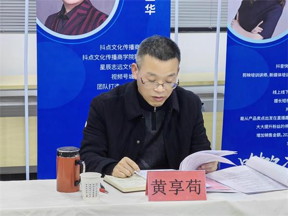 (本网讯 宋巍)1月13日,财经与旅游学院在学校南区天工楼冰点产教融合电商直播基地举行电子商务产教融合、科教融汇研讨会,学校教务处黄享苟处长、湖北冰点文化传播有限公司熊传兵董事长、董俊总经理、财经与旅游学院徐斌华院长及教学管理核心团队参加了本次研讨会。会议由徐斌华主持。
