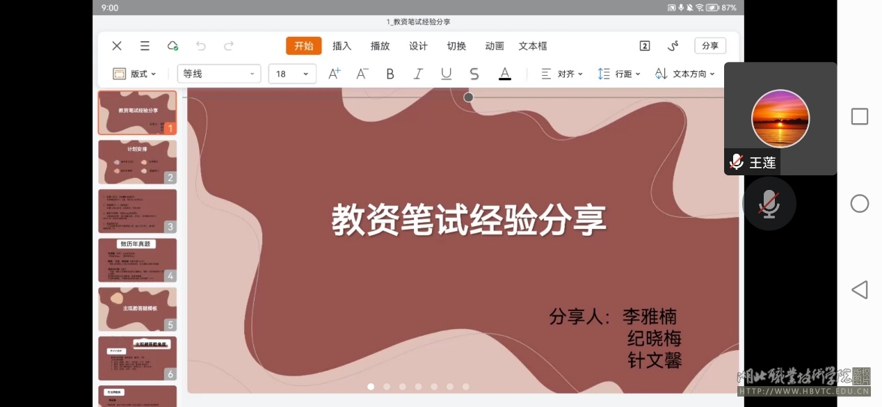 本次培训还邀请了在上次教师资格证考试中取得优异成绩的学生纪晓梅,针文馨,李雅楠,她们三位同学通过腾讯会议的方式给同学们作答题技巧与经验分享的线上交流。三位同学分享了她们背知识点的口诀、做题模板和思路,如何合理的安排复习时间以及如何调整自己备考的心态。同学们大受鼓舞,信心满满。
